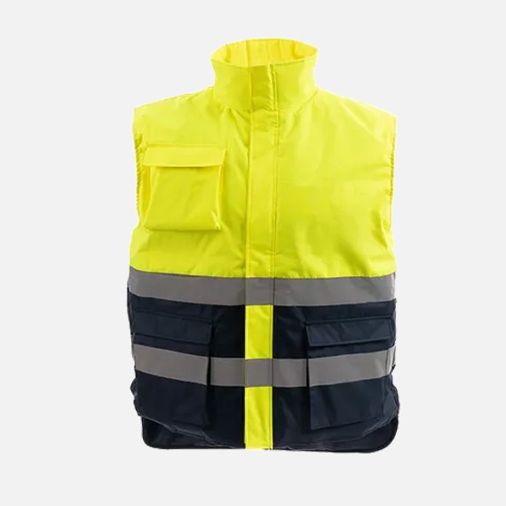 Este chaleco acolchado de alta visibilidad está diseñado para quienes trabajan al aire libre o en entornos donde la temperatura baja y la visibilidad no se puede comprometer. Su combinación de colores fluorescentes y bandas reflectantes asegura que tu presencia sea clara en cualquier condición, incluso con poca luz.